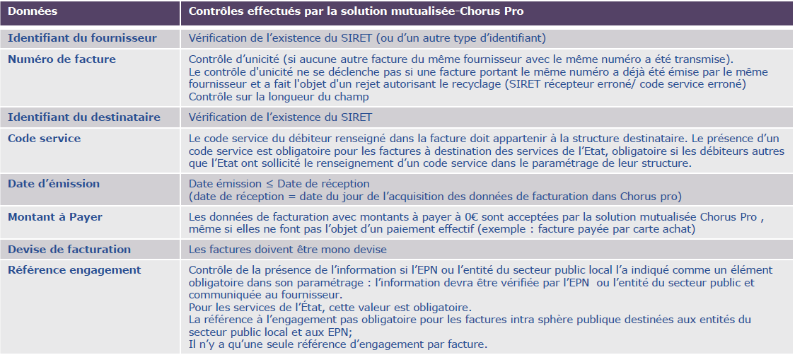 Chorus Pro réalise automatiquement des contrôles de la cohérence des données, quel que soit le mode de dépôt de la facture.