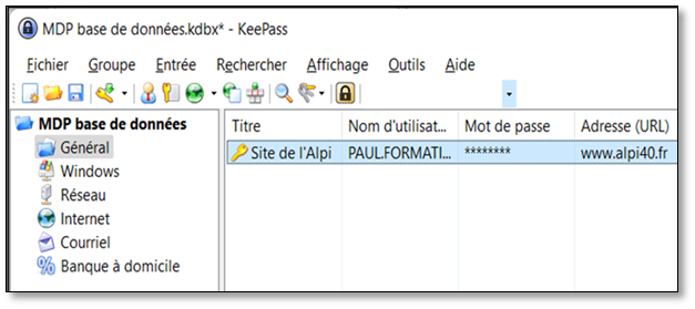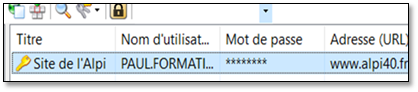 - Un double clic sur le Mot de passe (copie le mot de passe), puis Coller (Ctrl+V) dans la zone Mot de passe de votre site.